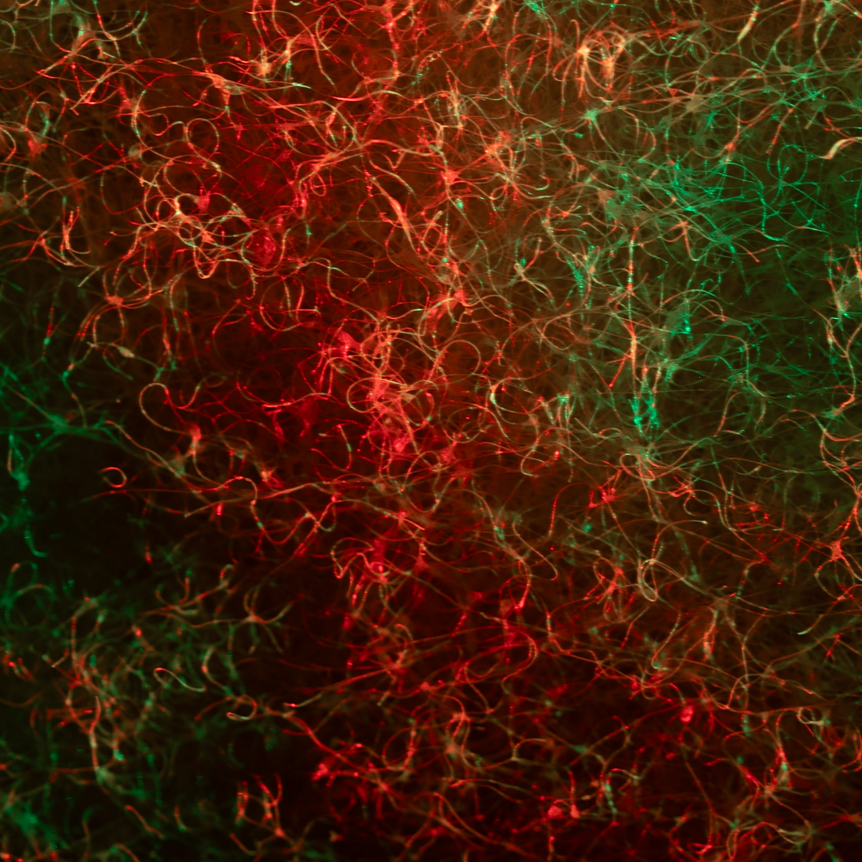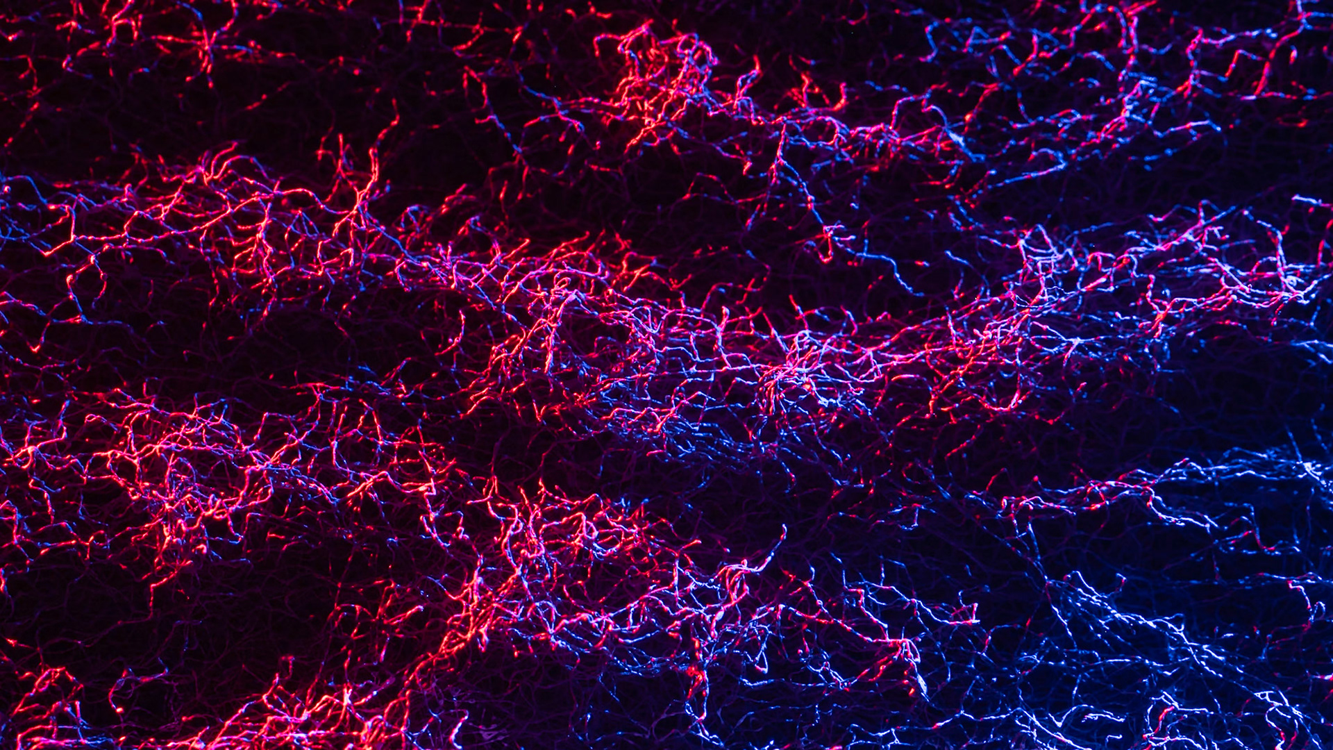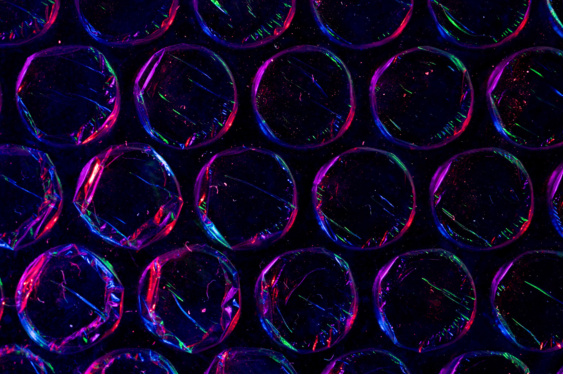 Experimenting with abstract photography. This s a macro shot of a kitchen scub pad under blue and red lights.